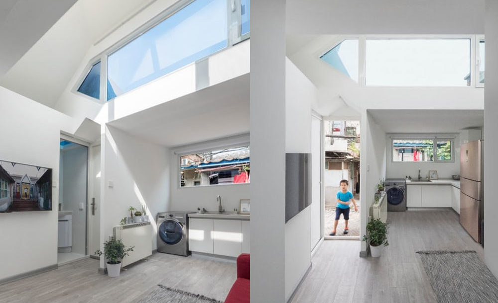Dnevni boravak ima duplu spratnu visinu, a prozori su pozicionirani tako da ne ometaju privatnost niti stanara niti komšija, a ujedno pružaju dovoljnu količinu prirodne svetlosti. Kuća ima i prostranu krovnu terasu sa koje se pruža pogled na grad.