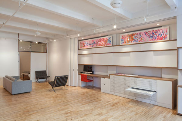 Kreativni umovi iz I-Beama osmislili su i projektovali stepenište koje vodi do kutka za odmor, dok je Šon Keni radio na kreiranju same šeme i kombinacije boja, duž i oko stepeništa. Već postojeći tonovi u stanu obezbedili su neutralnu podlogu za raznorazne varijacije sa kockicama, a prepoznatljivi komadi nameštaja, poput Barselona stolica, postavljeni su širom dnevne sobe.