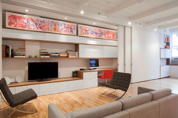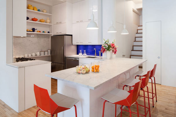 Proizvodi još jedne legendarne skandinavske kompanije zauzimaju značajno mesto u ovom čarobnom apartmanu. Ikeine crvene barske stolice kuhinji daju živost, a plavi zid nad sudoperom na najbolji način upotpunjuje ambijent. Masivna klizna vrata uglavnom služe kao izložbeni prostor za Melisine radove, a po potrebi otkrivaju ili sakrivaju različite prostorije kuće. Ovaj moderan i živopisan njujorški apartman dokazuje da LEGO kockice mogu biti mnogo više od puke dečje zabave.