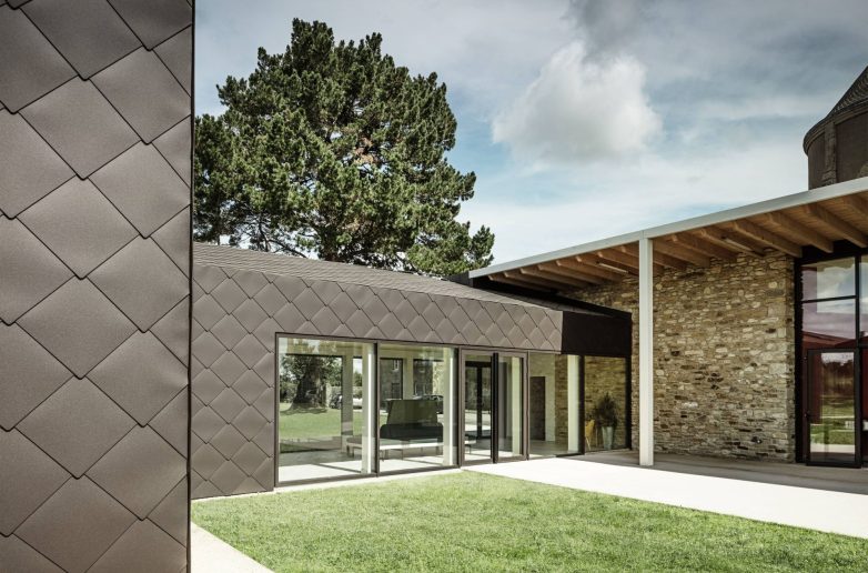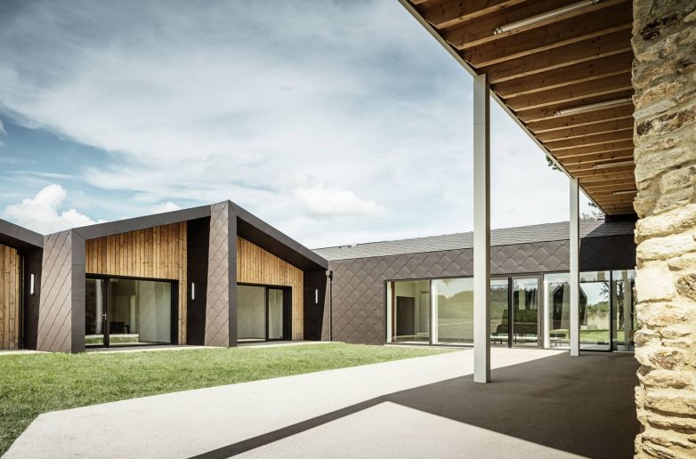 Novi objekti harmonično su uklopljeni u imanje bivšeg samostana La Moëre, koje obuhvata kamene kuće i građevine iz različitih arhitektonskih epoha. Pažljivo postavljene arhitektonske reference preuzimaju elemente, materijale i boje iz istorijskih zgrada te ih prenose u novi kompleks. PREFA rombovi 44 × 44 odaju počast starom samostanu iz 18. veka jer svojim izgledom podsećaju na škriljce sa krova crkve, dajući velikim površinama živost i dinamičnost.