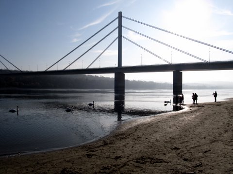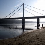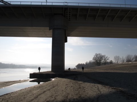 Kolega Goran Aničić fotografisao je most Slobode ćiji treći stub je potpuno na suvom. Novosađani znaju da je drugi stub uglavnom na pesku, ali da će i treći stub „isplivati“ – tome se niko nije nadao.
