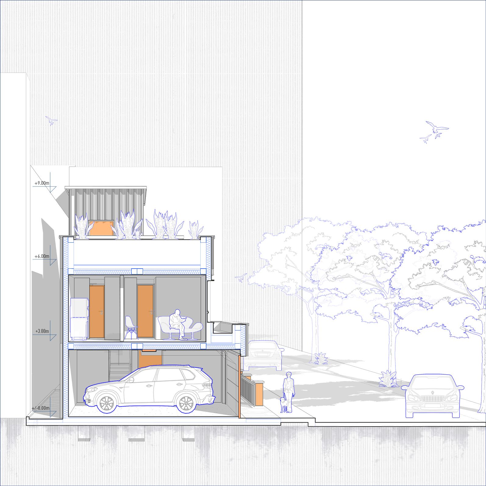 Projektno rešenje je postavljeno na mestu „urbanih udubljenja“ (seosko/neiskorišćeno zemljište između viših gradskih zgrada), na primeru urbanog okruženja velike gustine u Dizeldorfu, Nemačka.