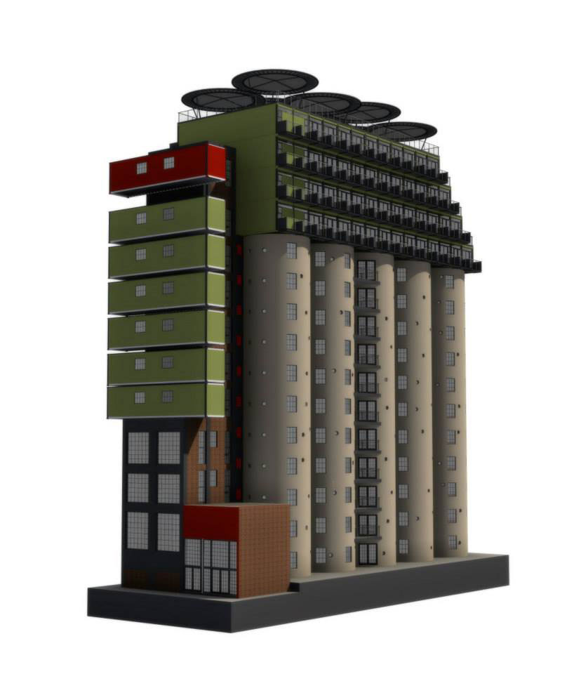 Kako bi proširili smeštajne kapacitete Johanesburga, gradske vlasti osmislile su da napušteni silos za skladištenje žita pretvore u studentski dom. U deset silosa smestilo se 375 soba na 11 spratova zajedno sa bibliotekom, kafe-kantinom i računskim centrom. Međutim, pošto taj broj soba nije bio dovoljan da se smeste svi planirani studenti odlučeno je da se silosi nadograde građevinskim kontejnerima u četiri nivoa.