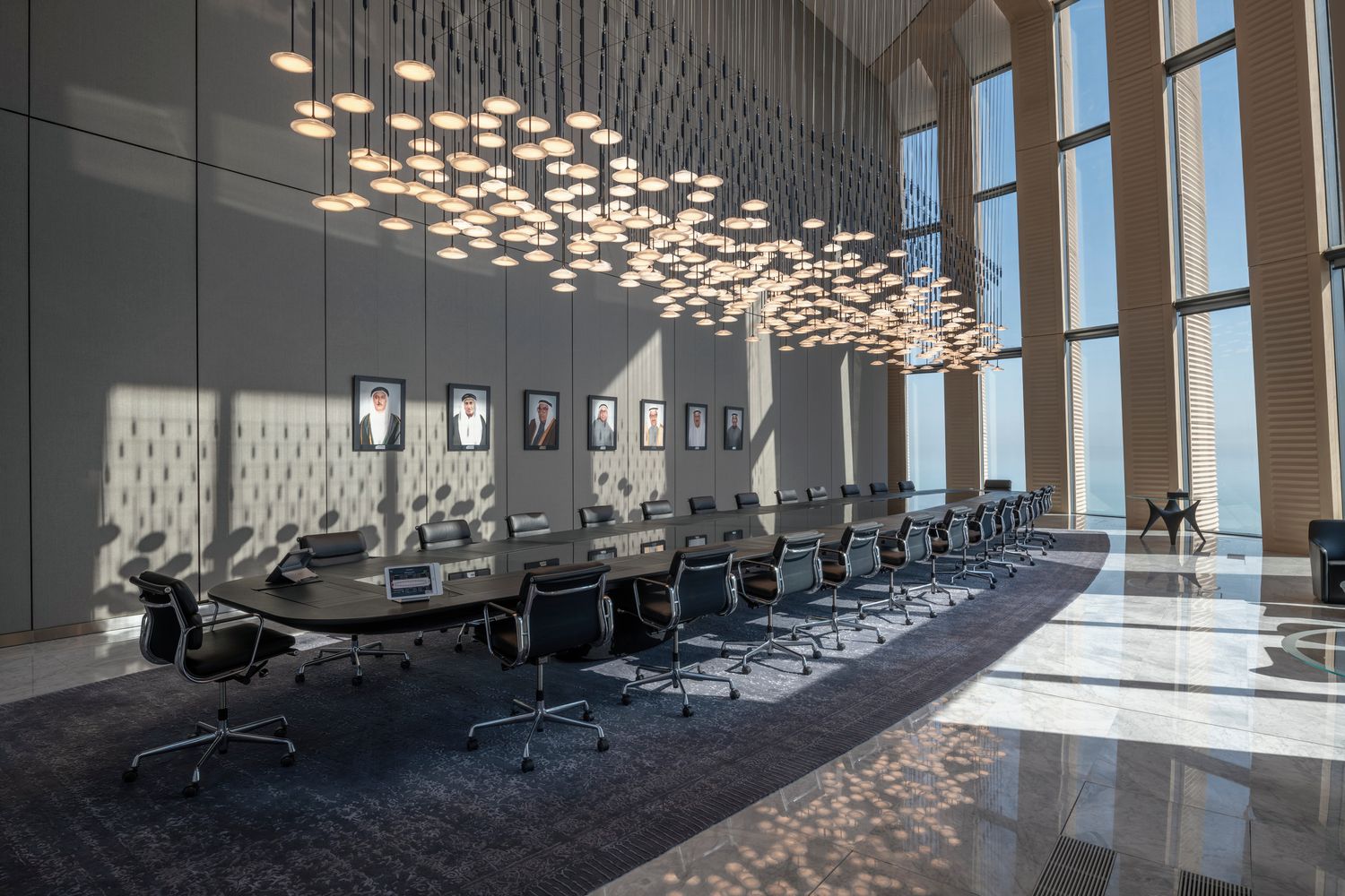 Britanska arhitektonska firma dizajnirala je i nameštaj i osvetljenje po meri za neboder, uključujući i rasvetu od duvanog stakla i sto u prostoriji za sastanke koji je dugačak čak 13 metara.