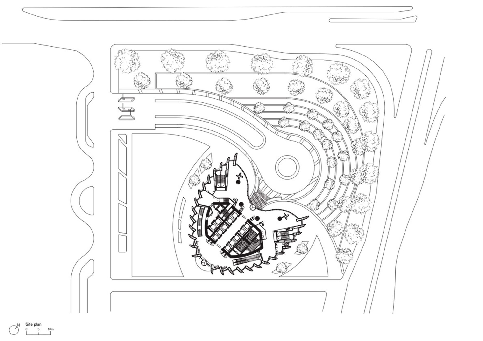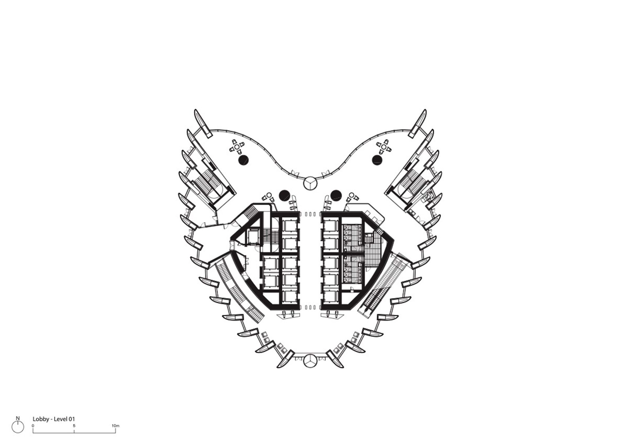 Kako bi se obezbedio adekvatan kancelarijski prostor za sve zaposlene, podne ploče su u obliku štita i nose kancelarije otvorenog plana, dok je jezgro lifta smešteno sa jedne strane, a sobe za sastanke raspoređene duž zakrivljene fasade.
