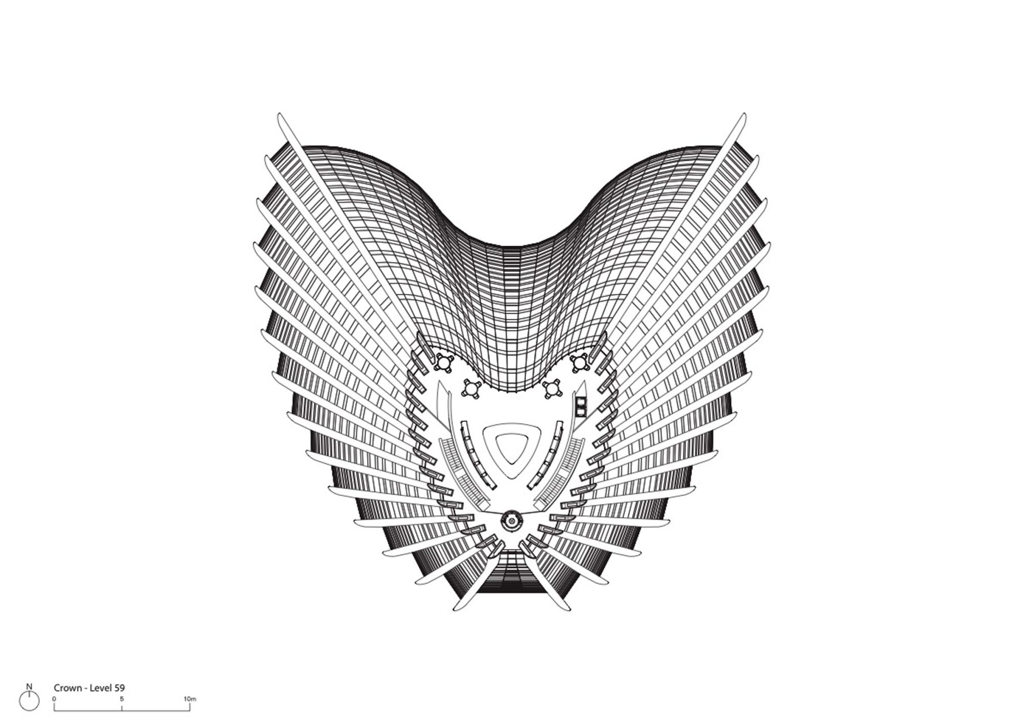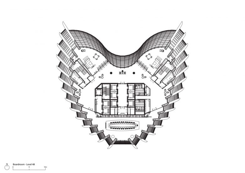 Na vrhu zgrade, unutar šiljatog vrha strukture, nalazi se predsednički klub koji je osvetljen preko velikog zakrivljenog krovnog prozora.