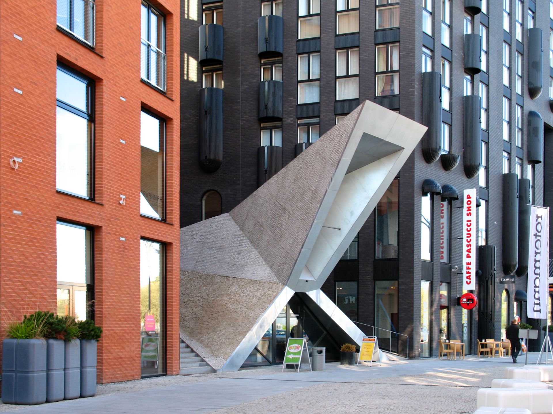 Gledano iz daljine, kombinacija „novog i starog” daje utisak da moderna staklena fasada poslovnog tornja „raste” iz istorijskih delova.