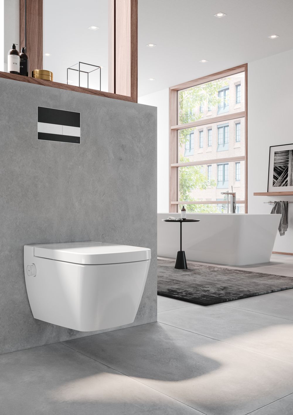 Na prvi pogled izgleda kao običan WC – samo upravljačko dugme s leve ili desne strane keramičke šolje upućuje na to da ovaj dizajnerski WC ima puno više da ponudi: potpuno integrisanu funkciju bidea.