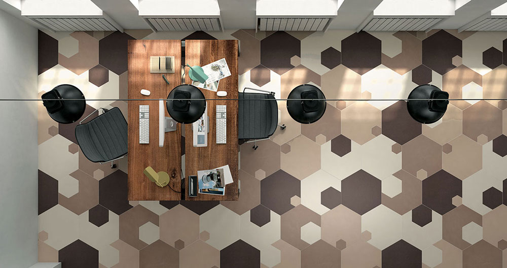 U ponudi proizvođača keramike sve češće se mogu videti pločice u obliku šestougaonika odnosno heksogonalne forme. Italijanska dizajnerka Lavinia Modesti i Argentinac Javier Deferrari osmislili su seriju pločica pod nazivom Xgone za kompaniju Mirage.