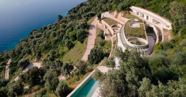 Idealna za +40°C: Kuća na Lefkadi koja prati liniju planine u koju je utkana
