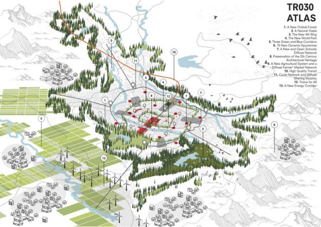 Italijanski arhitekta Armando Brasini je još 1925. godine dao smernice za transformaciju Tirane u modernu prestonicu. Skoro sto godina kasnije, još jedan Italijan daje novu viziju glavnog grada Albanije. Generalni plan arhitekte Stefano Boerija pod nazivom Tirana 2030 (TR030) definiše novu eru prestonice kao grada kontrolisanog razvoja, napredne infrastrukture, zelenih koridora, a sve to uz zaštitu arhitektonskog nasleđa.
