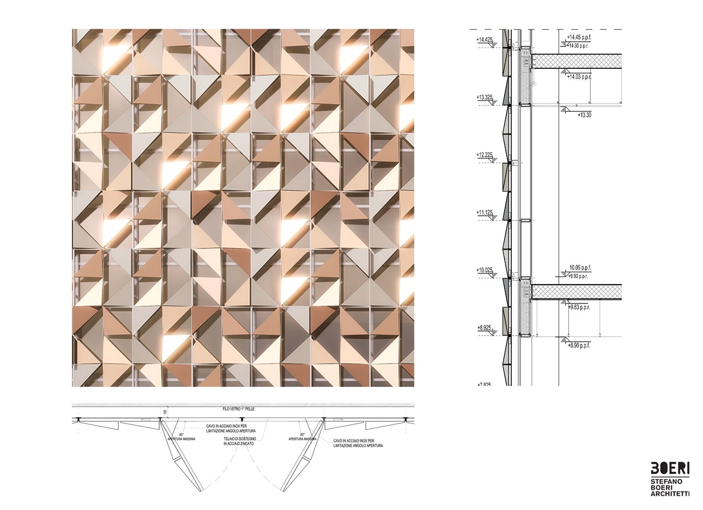 Francesca Cesa Bianch, vođa projekta, izjavila je da je ova fasada „specijalno osmišljena za naš prvi projekt u Albaniji i da ona daje ovoj zgradi unikatnu notu.“ Ona dodaje da se fasada sastoji od „modula površine 110 centimetara kvadratnih koji samo jednom polovinom prelamaju svetlost zahvaljujući trouglovima zavarenim iznutra.“