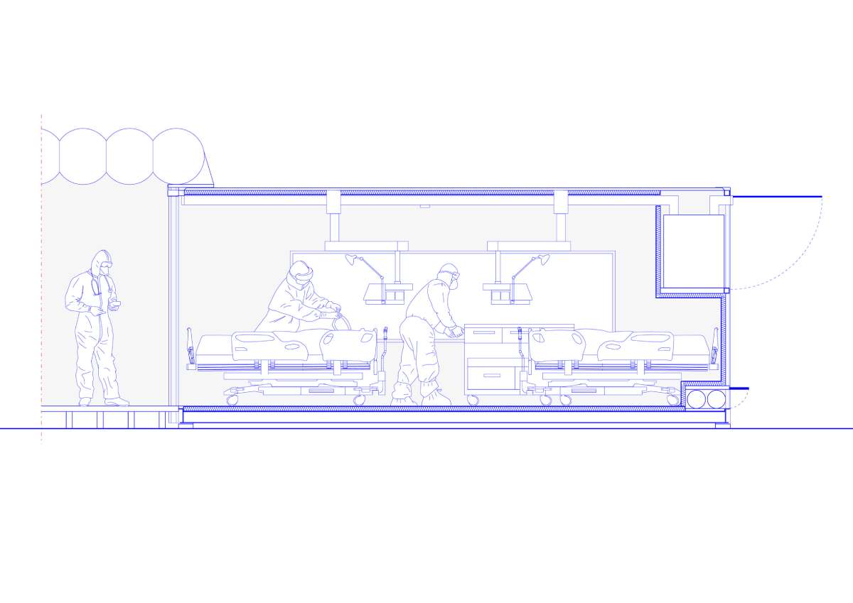 Italijanski arhitekti Carlo Ratti i Italo Rota dizajnirali su sistem koji bi mogao da služi kao osnova za ekspresno podizanje zdravstvenih intenzivnih jedinica. U modularne jedinice napravljene od transportnih kontejnera bi se postavili kreveti i uređaji, te bi kao takav mogao da funkcioniše kao dodatno bolničko krilo ili kao potpuno nova bolnica kao što je bila ona u Vuhanu koja je podignuta za samo 10 dana.