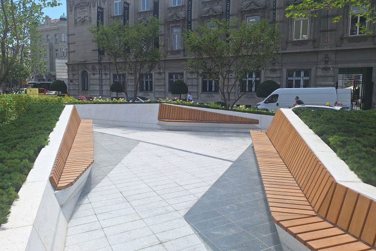 Koga zabole za strane turiste, mi stanovnici grada zivimo ugradu gde nema dovoljno zelenila, kakve betonske klupe i gluposti vratite zelenilo u grad!