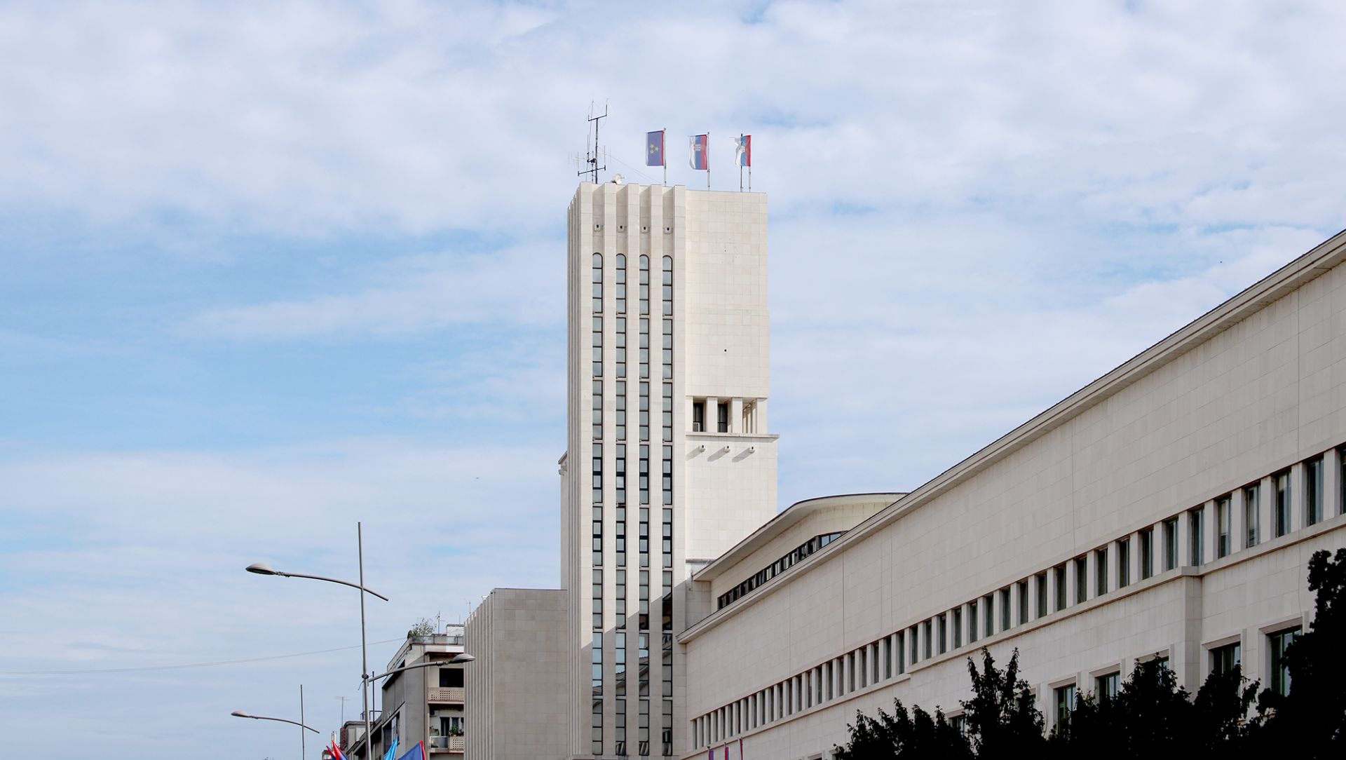 Iza moćnog horizontalizma prozorskih otvora na Bulevaru nalazi se namenski projektovana Većnica sa Banskim dvorom, u kojoj je danas smeštena Skupština Autonomne pokrajine Vojvodine.
