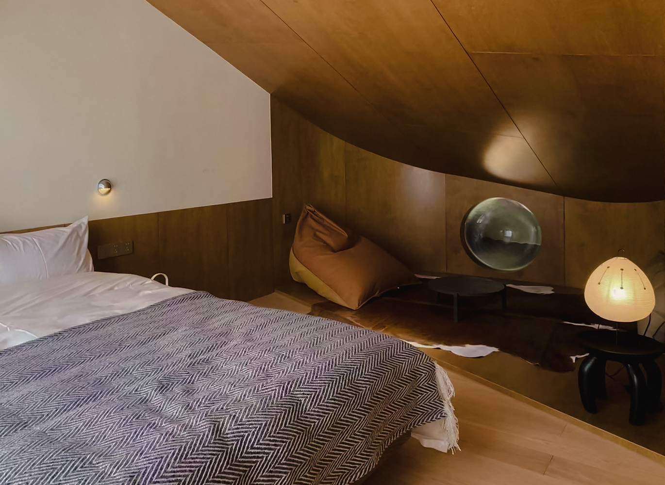 Tokom prve posete lokaciji, dizajner i vlasnik su uspostavili jasnu strategiju: da izdignu ceo objekat. Ovaj pristup nije samo stvorio dva različita prostorna kvaliteta – mir iznad i dinamiku dole – već je i iskoristio bujne krošnje ginka kako bi obezbedio privatnost i panoramske poglede iz soba.