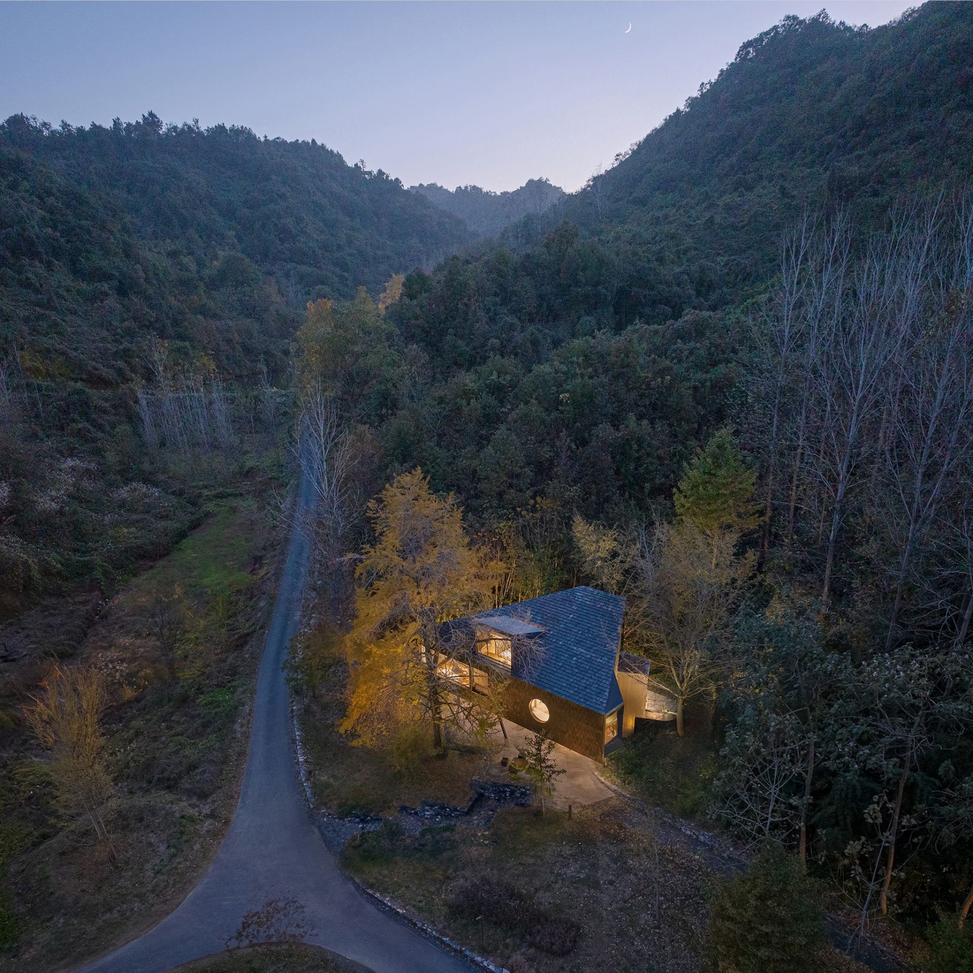Na raskrsnici dve pešačke staze u dolini Guangđačong, nedaleko od poznate Doline ginka, smešten je Treehouse – projekat pekinškog biroa Moguang Studio, realizovan u uslovima krajnje ograničenog prostora i zahtevnog prirodnog okruženja.