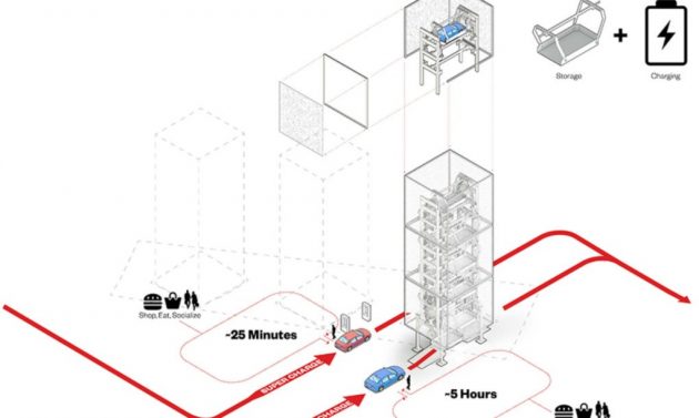Jedan od najvećih problema vlasnika električnih vozila jeste pronalaženje punjača, odnosno, mesta za dopunu baterije automobila. U potrazi za rešenjem ovog problema, firma Ennead Lab predstavila je projekat garaže koja osim toga što skladišti automobile u gradskim uslovima, istovremeno i vrši punjenje vozila na električni pogon. I to za svega 25 minuta!