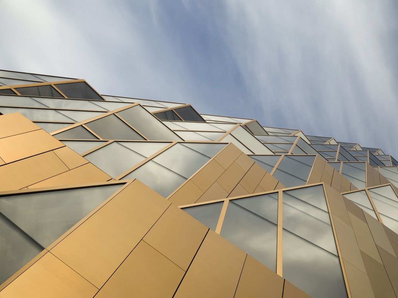 Bakarna fasada je trouglaste forme koja simboliku izvodi iz hemijske strukture ovog plemenitog materijala.