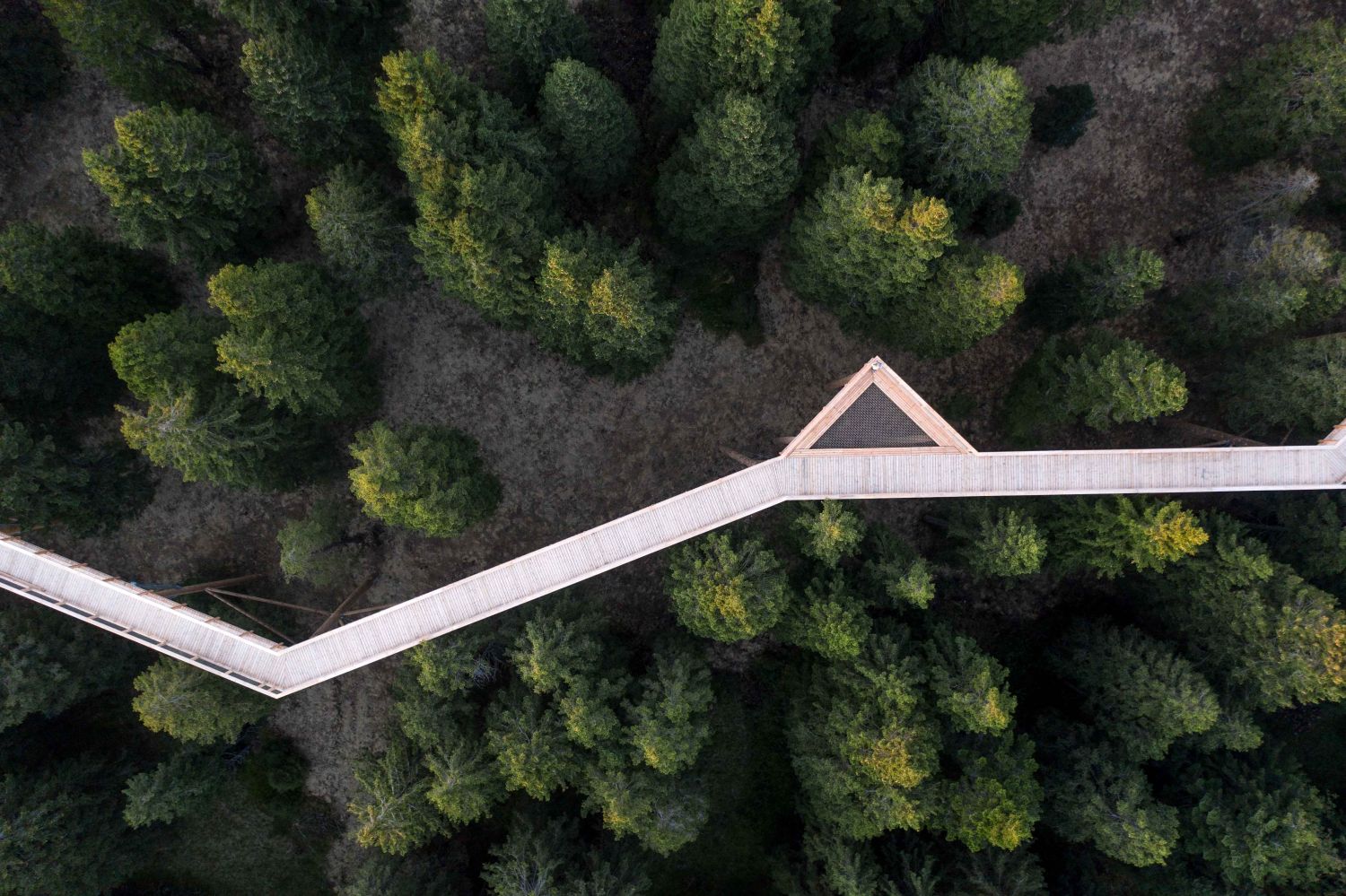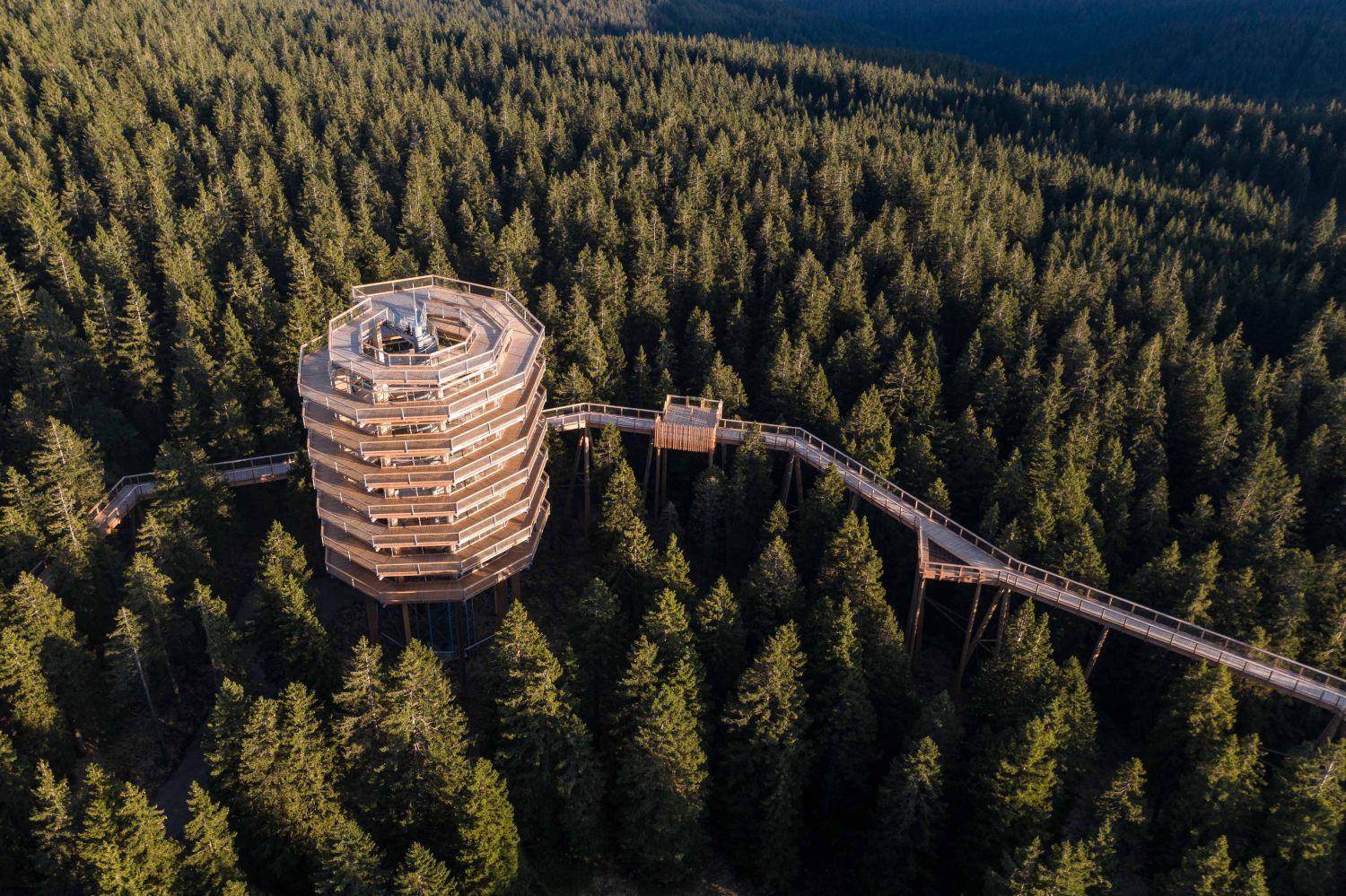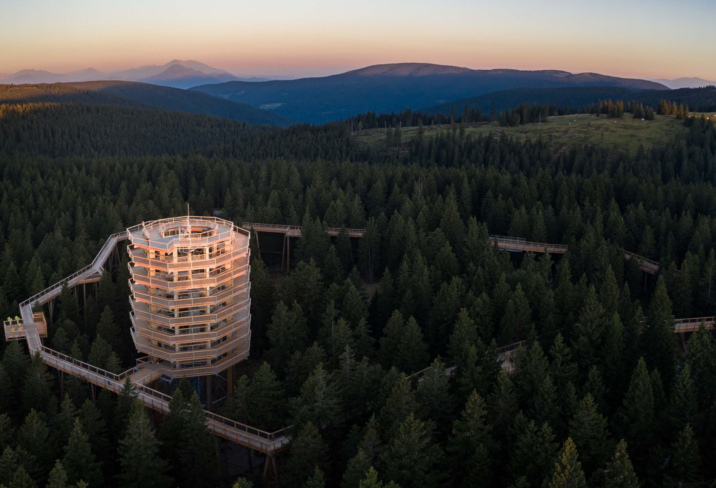 Drvena staza diže se iznad stabala pružajući prelep pogled na Pohorje i širu okolinu.