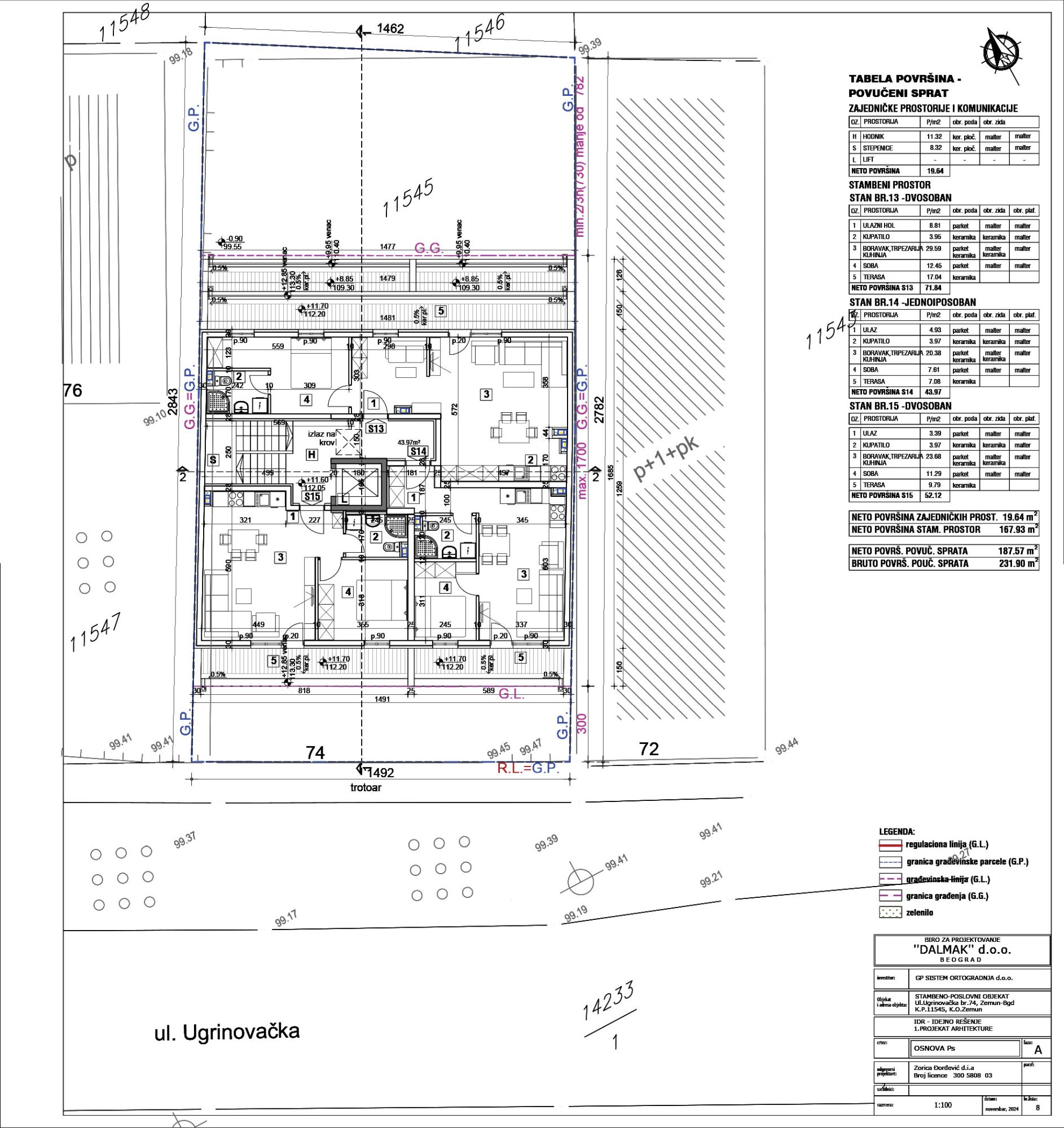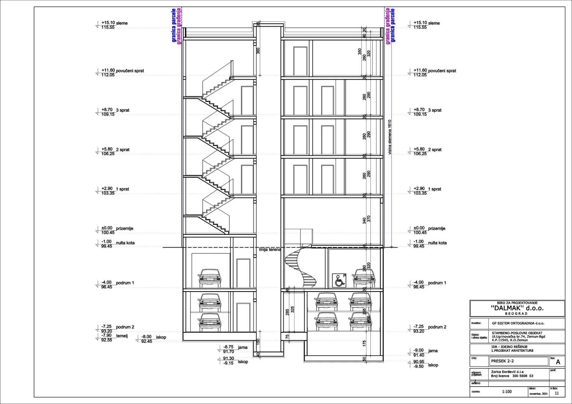 Reč je o projektu beogradskog preduzeća GP Sistem Ortogradnja d.o.o., koji predviđa izgradnju objekta spratnosti 2Po+P+3+Ps sa ukupno 15 stanova, jednim lokalom u prizemlju i podzemnom garažom sa 20 parking mesta. Nosilac izrade urbanističkog projekta je Dalmak d.o.o., dok je Aleksandra Stanojević, dia, potpisana kao odgovorni urbanista, a Zorica Đorđević, dia, kao odgovorni projektant idejnog arhitektonskog rešenja.