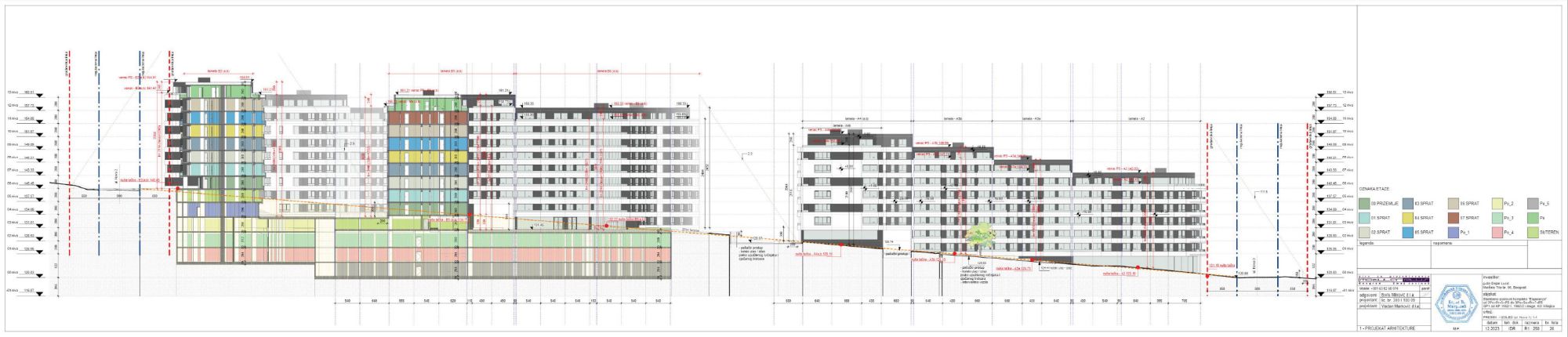 Objekat A, spratnosti 2Po+P+5+Ps – 3Po+Su+P+7+Ps se sastoji od osam lamela različite spratnosti i zajedničkim podzemnim delovima i garažom. Objekat B, spratnosti 3Po+P+6+Ps – 3Po+Su+P+7+Ps sastoji se od šest lamela različite spratnosti i zajedničkim podzemnim delovima i garažom.