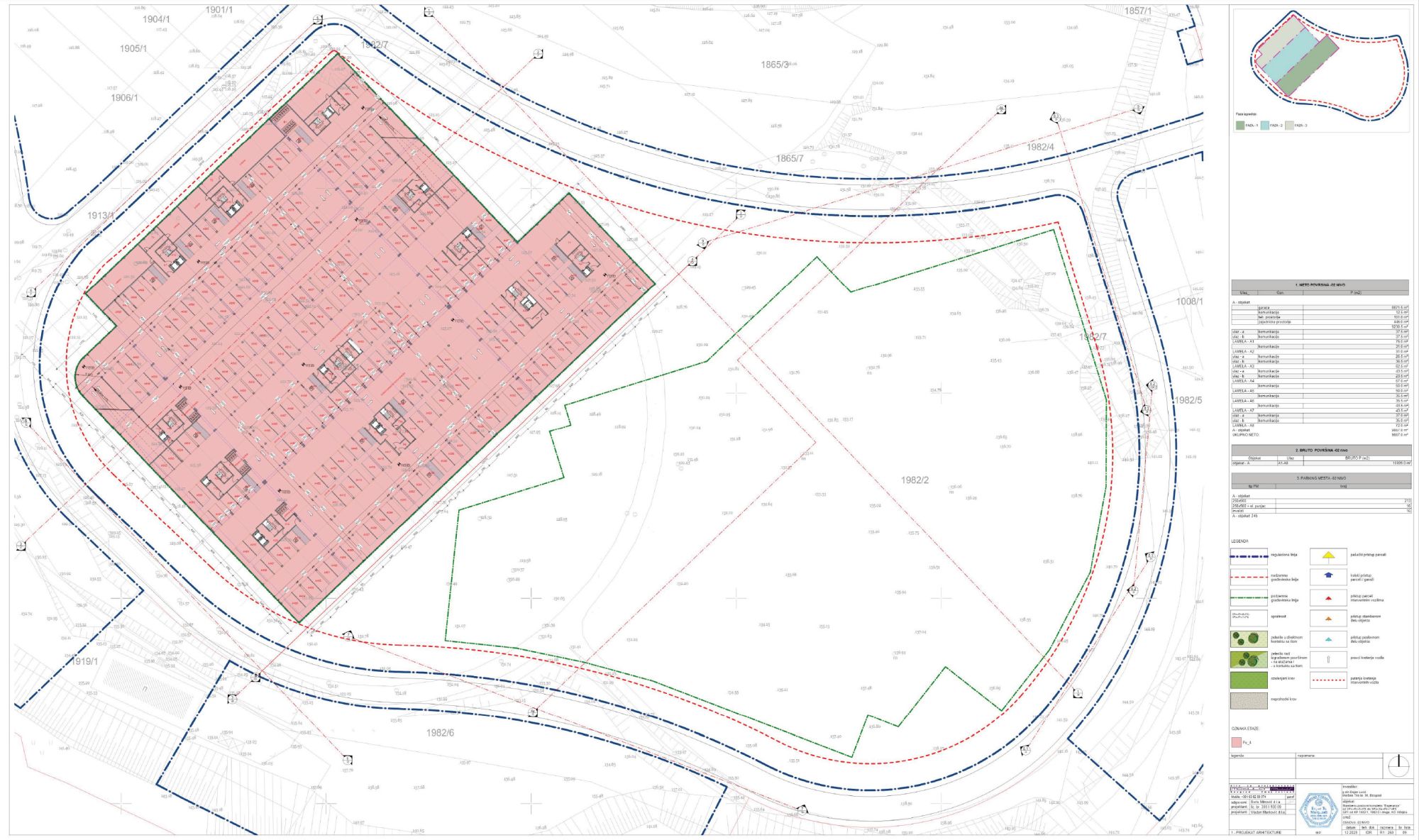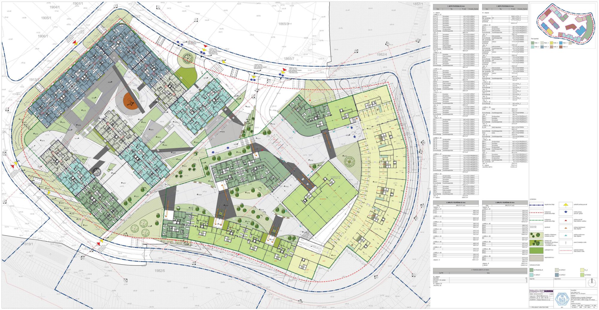 Za objekte A i B je planirano po devet faza izgradnje. BRGP za objekat A iznosi 72.181 m², a za objekat B 102.205 m², čime dolazimo do ukupne bruto površine kompleksa od 174.386 kvadratnih metara.