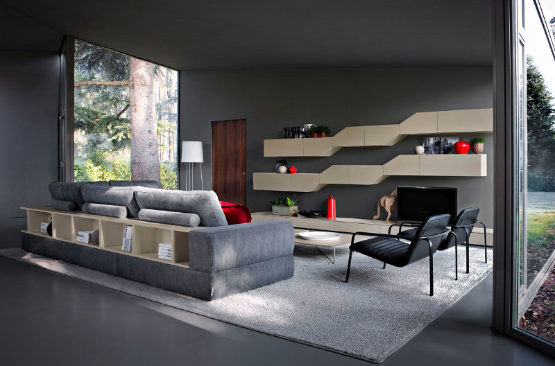 Uređenje dnevne sobe: police u trendu
