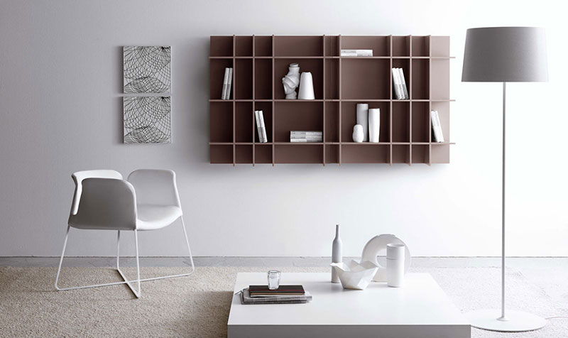 Kombinacija dve boje na policama je nepogrešivo rešenje. Tako bele konzolne police sa zelenim otvorenim policama i pored vrlo jednostavne geometrije deluju veoma interesantno. Model Nest se sastoji iz dva dela: donje police na koju se postavlja televizor i čija dubina iznosi 51 centimetar i gornjih polica čija dubina je nešto manja i iznosi 37 cm. Veličina otvorenih polica je 32 x 32 cm i 32 x 60 centimetara.