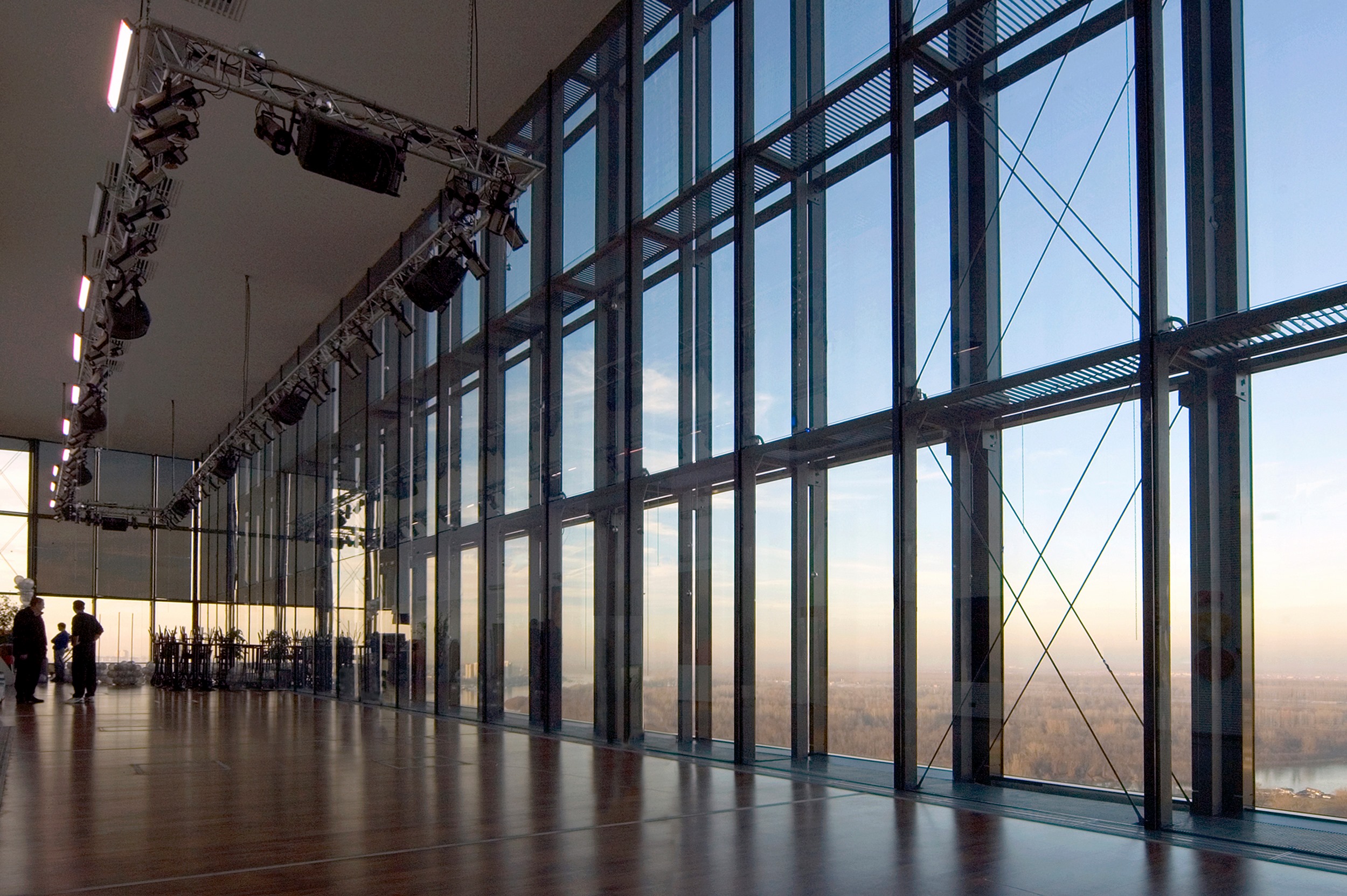 Sve je ostalo na vertikalnoj kuli, izgrađenoj od armirano-betonske konstrukcije, s unutrašnjim jezgrom za stepenište i liftove, kao i kancelarijskim prostorom i salama za sastanke. Konstrukcija je bila obučena u staklo-aluminijum fasadu s obojenim parapetima, a dodatni akcenat celoj formi davala je krovna terasa na 24. spratu, s duboko prepuštenom konzolarnom armirano-betonskom nadstrešnicom koja je kuli davala vizuelni završetak u vidu modernog krovnog venca.