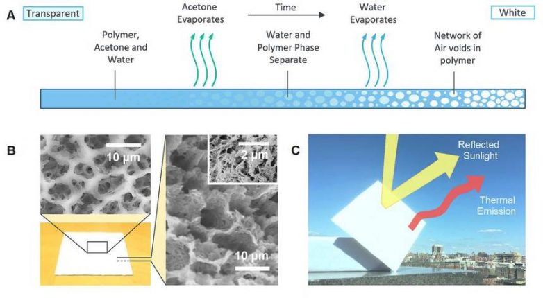 Istraživači svoj izum nazivaju „jednostavnom, jeftinom i skalabilnom metodom zasnovanom na inverziji faze za proizvodnju hijerarhijski poroznih poli-premaza (P(VdF-HFP)HP) sa dobrom PDRC sposobnošću.“ Tokom ovog procesa stvara se neka vrsta plastične folije pune mehurića.