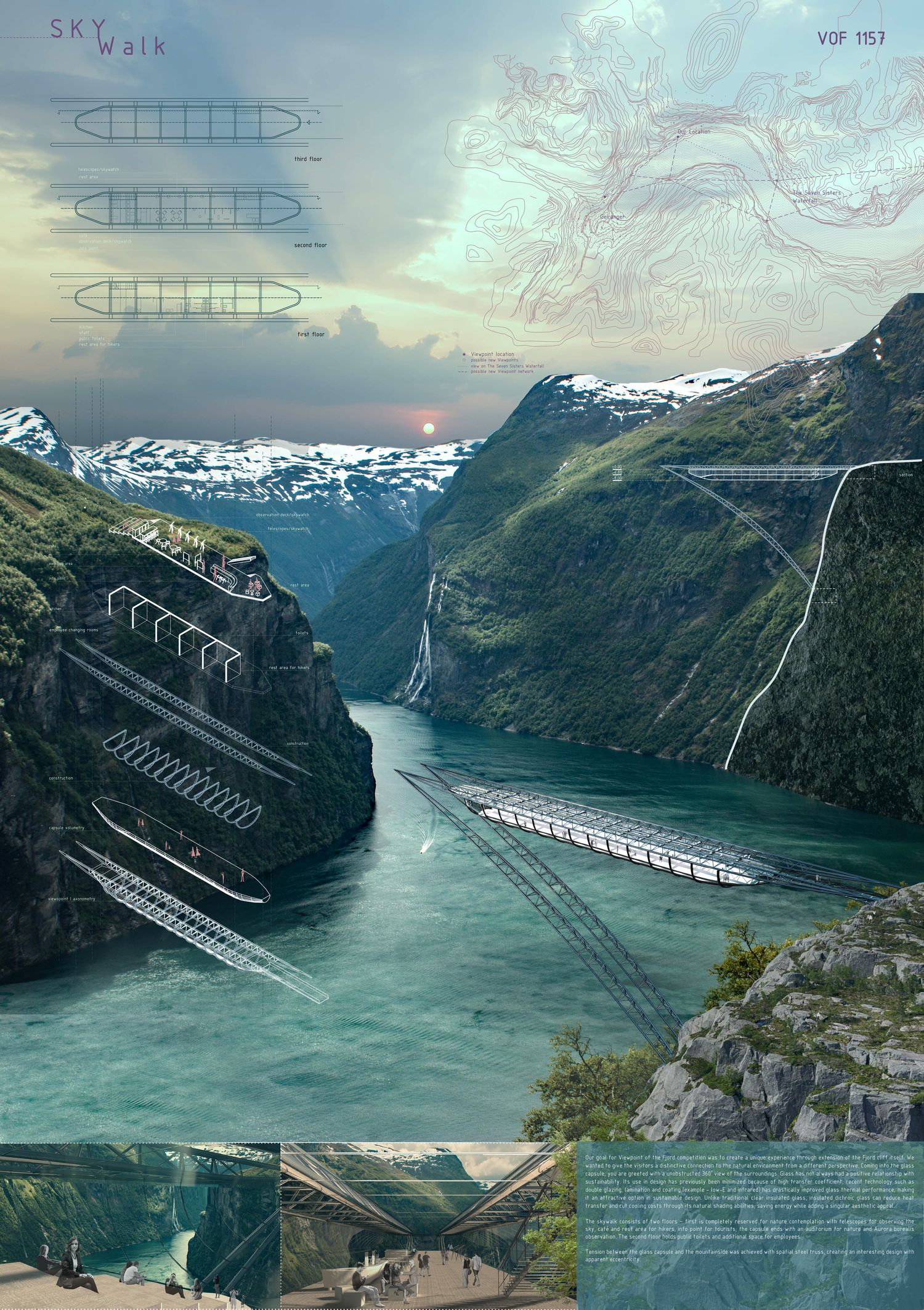 Okosnicu projekta Skywalk čini stvaranje jedinstvenog iskustva prostora kroz objekat koji predstavlja ekstenziju litice fjorda. Objekat omogućava posetiocima da ostvari karakterističnu vezu s prirodnim okruženjem iz nove perspektive.