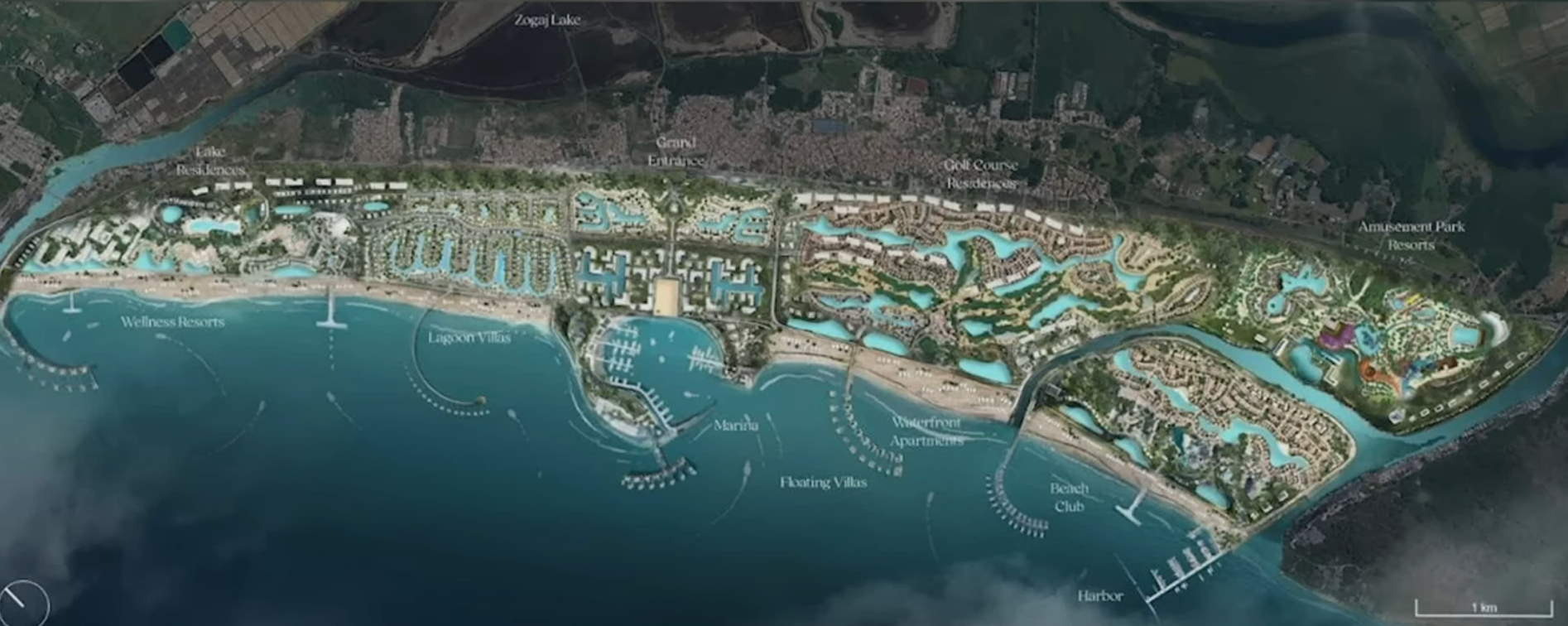 Ako pogledate render koji je procurio u emisiji TV Vijesti, predviđena je izgradnja luksuznih višespratnica na prvoj liniji obale, ali i kopanje veštačkih kanala po uzoru na Dubai (poput „laguna“ između hotela i vila), čime bi se dobila duža linija obale, i posledično, više objekata bi bilo direktno uz more. Za one koji žele da znaju više, neka pogledaju Dubai Marinu i još kanala koji su dali Dubaiju mogućnost gradnje bezbrojnih nekretnina na samoj obali.