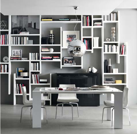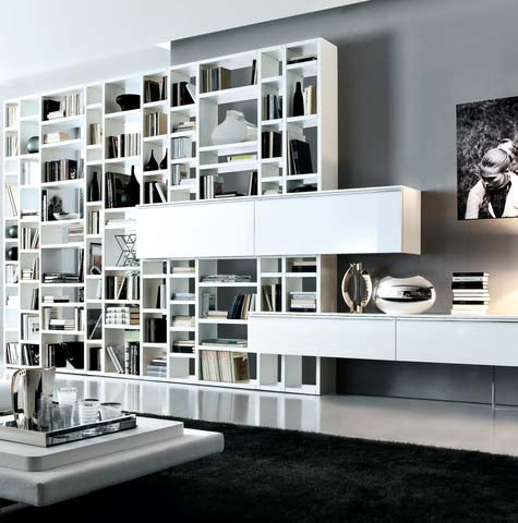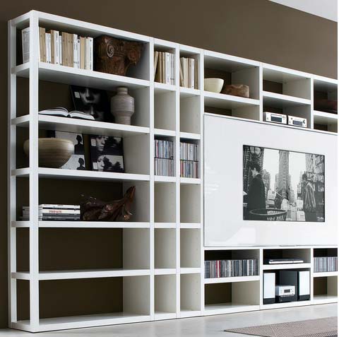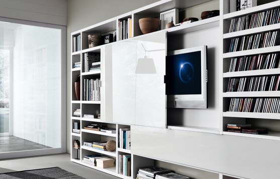 Inovacije u konstrukciji omogućavaju da velika biblioteka na zidu deluje lagano i prozračno. Debele konstruktivne ploče su male težine i tako se mogu postaviti konzolno na zid.
