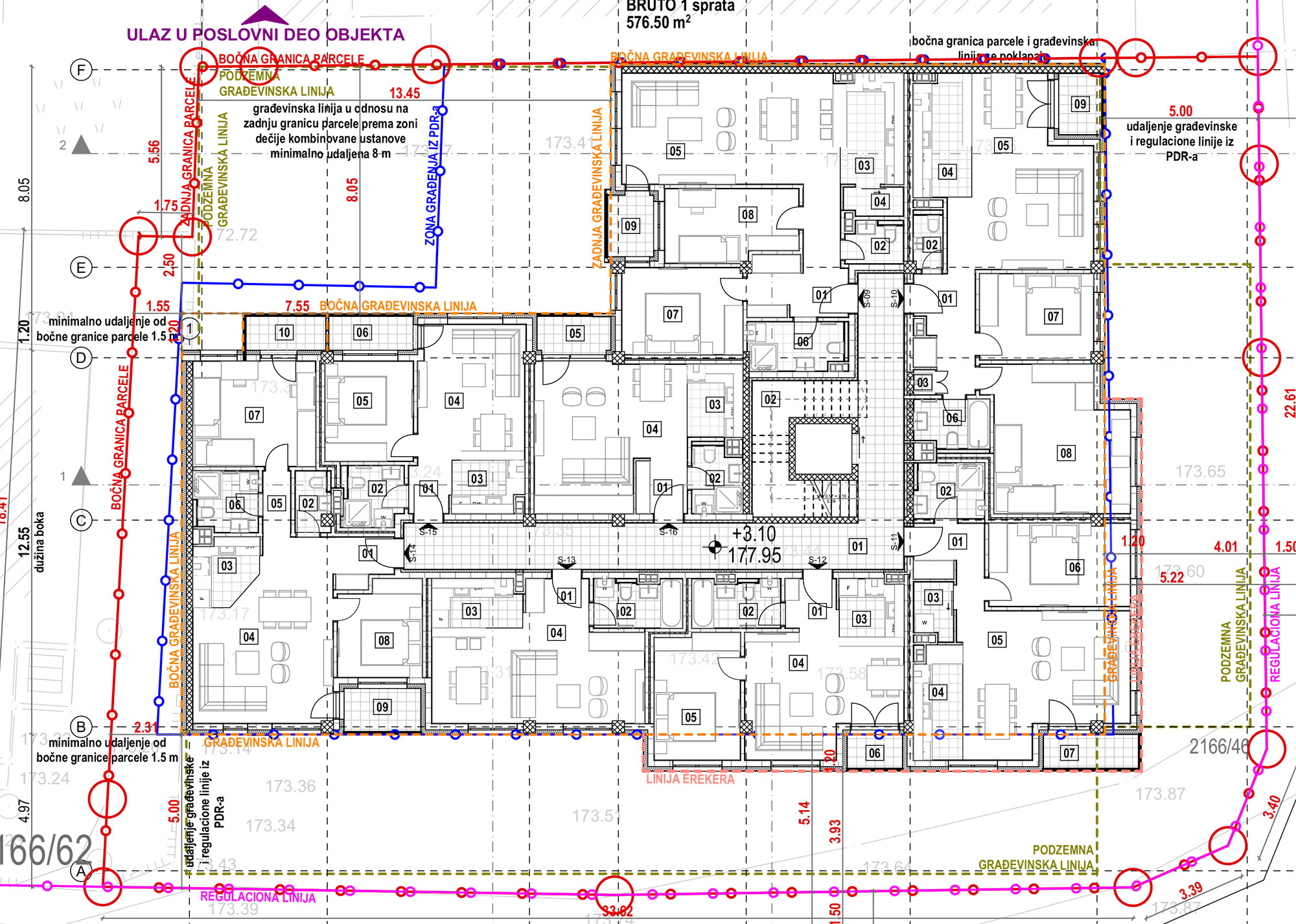Planirani objekat ima ukupnu BGRP od 2.410,40 kvadratnih metara, a projektovan je sa jednom podzemnom etažom, odnosno garažom (753.95 m2) i tri nadzeme etaže namenjene stanovanju (1.656,45 m2).