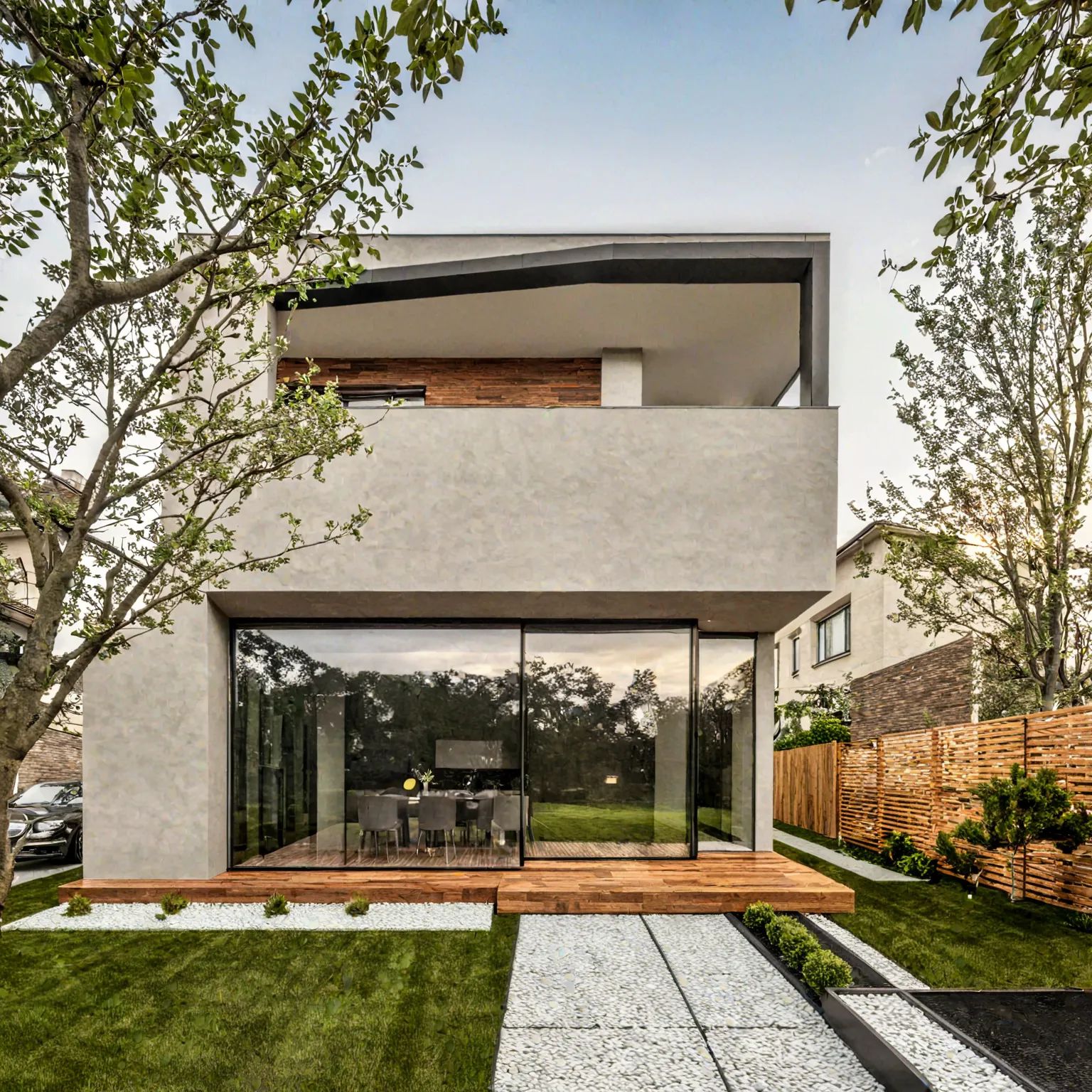 Pet reči: “idealan dom u beogradskom predgrađu” i desetak sekundi bilo je sve što je potrebno da se dobije slika ispod. Morate priznati, izgleda pomalo zastrašujuće poznato, kao da je izvučena sa naslovne strane nekog arhitektonskog magazina.