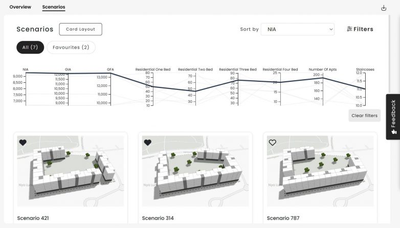 Ukoliko vam se ne sviđa rešenje po bilo kojem parametru, moguće je lako menjati podatke. Pomeranjem klizača gore-dole, možete, na primer povećati broj garsonjera ili smanjiti stepeništa. Možete povećati površinu celog kompleksa ili ukloniti ceo jedan blok i umesto njega postaviti soliter i analizirati šta ste time sve dobili a šta izgubili.