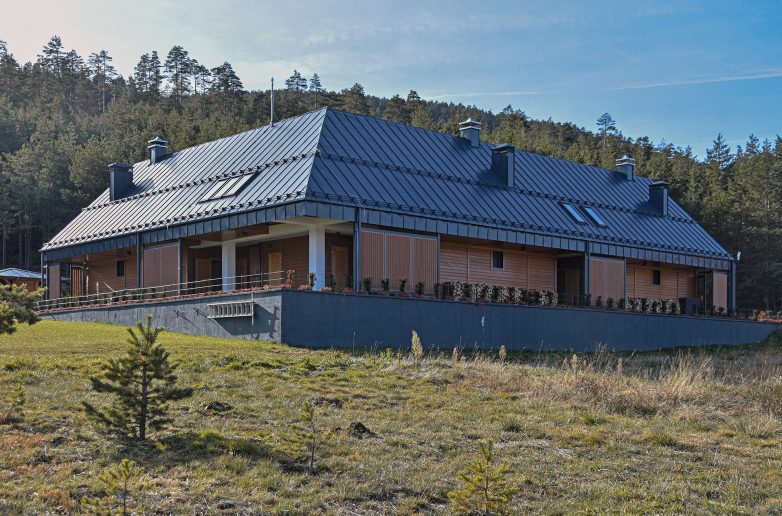 Projektovana kao L-forma okrenuta ka šumi, vila na padinama Tornika spaja tri zasebne celine u jednu arhitektonsku kompoziciju.