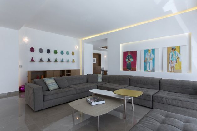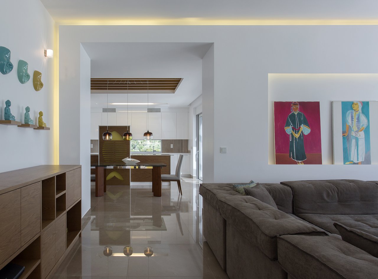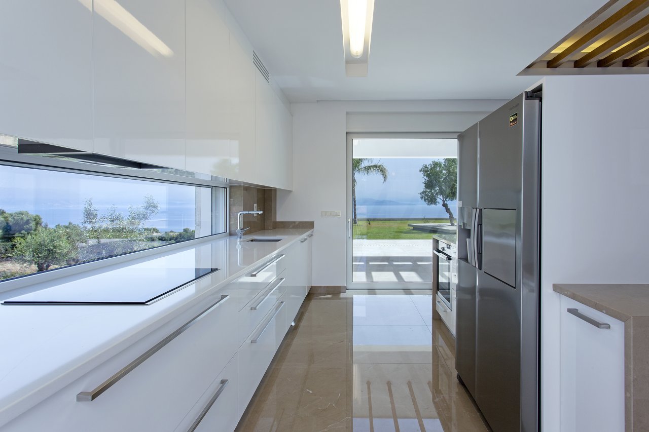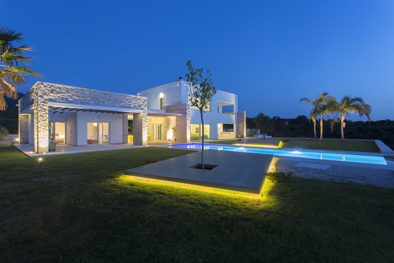 Vila, po projektu biroa MGXM Architects, smeštena je na brdašcu i relativno je blizu obali koja se proteže duž zapadne strane Mesinijskog zaliva na Peleponezu. Sastoji se iz dva volumena koji su povezani terasom koja tokom leta služi i kao dnevni boravak. Ugođaj boravka na otvorenom, pored dugačkog bazena i pogleda na more, obogaćuje i stablo masline koje, kao i sva ostala stabla na placu, nisu posečena tokom gradnje kuće.