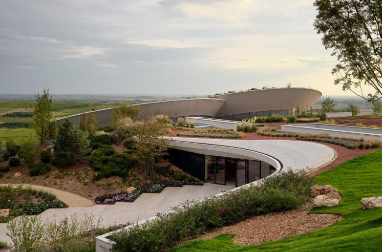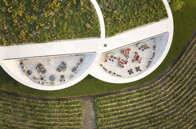 Diskovi koje je oblikovao budimpeštanski studio BORD lebde iznad vinograda, stvarajući uzbudljiv kontrast sa podzemnim podrumom od čelika i kamena.