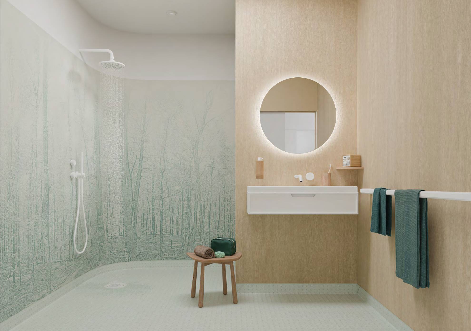 Serija Aquasense sadrži 64 različita dezena a uz zidne vinile ponuđeni su i odgovarajući podni motivi koji su nešto deblji sa hrapavijom teksturom otpornom na klizanje (R10). Vinil je visokootporan na bakterije pa se preporučuje za toalete u bolnicama, školama ili staračkim domovima.
