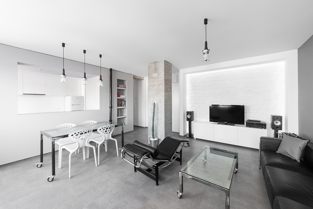 Stanovi u novogradnji nisu skrojeni po meri kreativne klase. Princip složenosti i otvorenosti prostora svedeni su na nivo integracije aktivnosti u dnevnoj zoni na relaciji dnevna soba, trpezarija i kuhinja, pri čemu dolazi do dimenzionalne atrofije svake od njih. Dnevna i noćna zona razdvojene su do granice potpune isključivosti, a integracija rada i stanovanja izoluje se kao opcija. Kružna komunikacija ili fleksibilnost prostora nema ni u naznakama, dok je princip polivalentnosti misaona imenica. Hertcbergerovim rečima, novogradnja u Srbiji zapravo je nasilje.