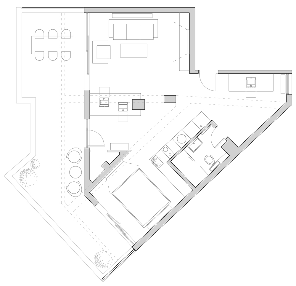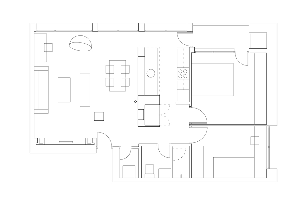 Arhitektice Teodora Del Canto Stamenković, Milica Lambrin i Aleksandra Praštalo polivalentnost u Stanu sa pogledom na Beograd realizuju kroz otvorenost plana, prostornu fleksibilnost i stepenovanje prostora na liniji privatnosti sadržaja. Udvajanje rada i stanovanja takođe je prisutno.