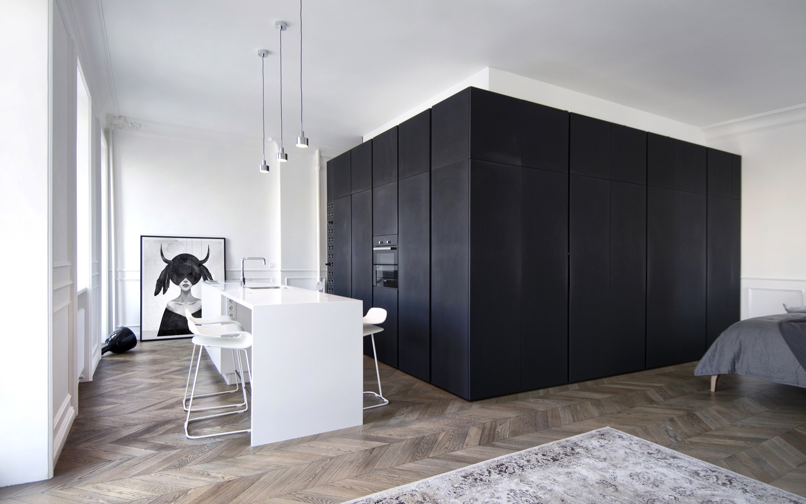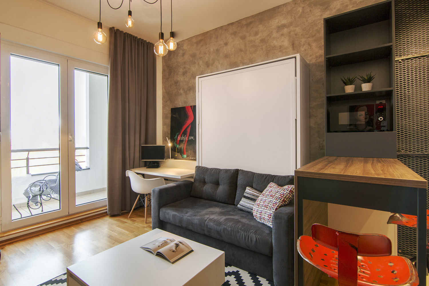 U projektu Enterijera garsonjere sa zidnim krevetom arhitektica Sonja Brstina polivalentnost realizuje kroz otvorenost plana, prostornu složenost i prostornu fleksibilnost. Dnevna, radna i noćna zona koegzistiraju u istom prostoru, a pomoću sistema rasklopivog kreveta. Iako skroman po dimenzijama, kroz nekoliko gestova ovaj stan dobio je vrednost upotrebne polivalentnosti. Čak je i udvajanje rada i stanovanja našlo svoj kutak.