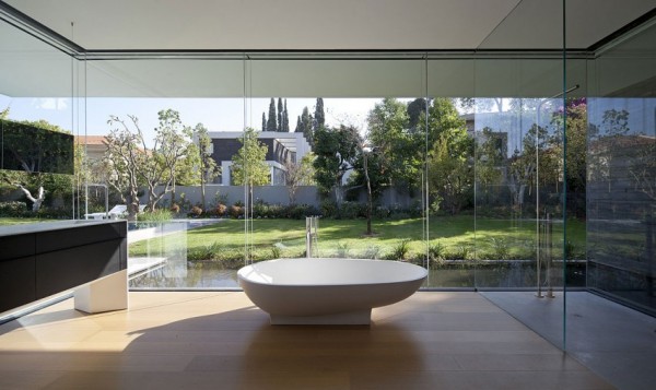 Izraelski arhitekta Pitsou Kedem, koji potpisuje projekat ove vile, akcenat je stavio na suptilnu traniziciju između eksterijera i enterijera. Kuća od 550 kvadratnih metara prožeta je dvorištem tako da ono praktično postaje sastavni deo dnevne sobe. Taj utisak je dodatno pojačan zahvaljujući staklenim zidovima koji preovlađuju na strani koja gleda ka bazenu.