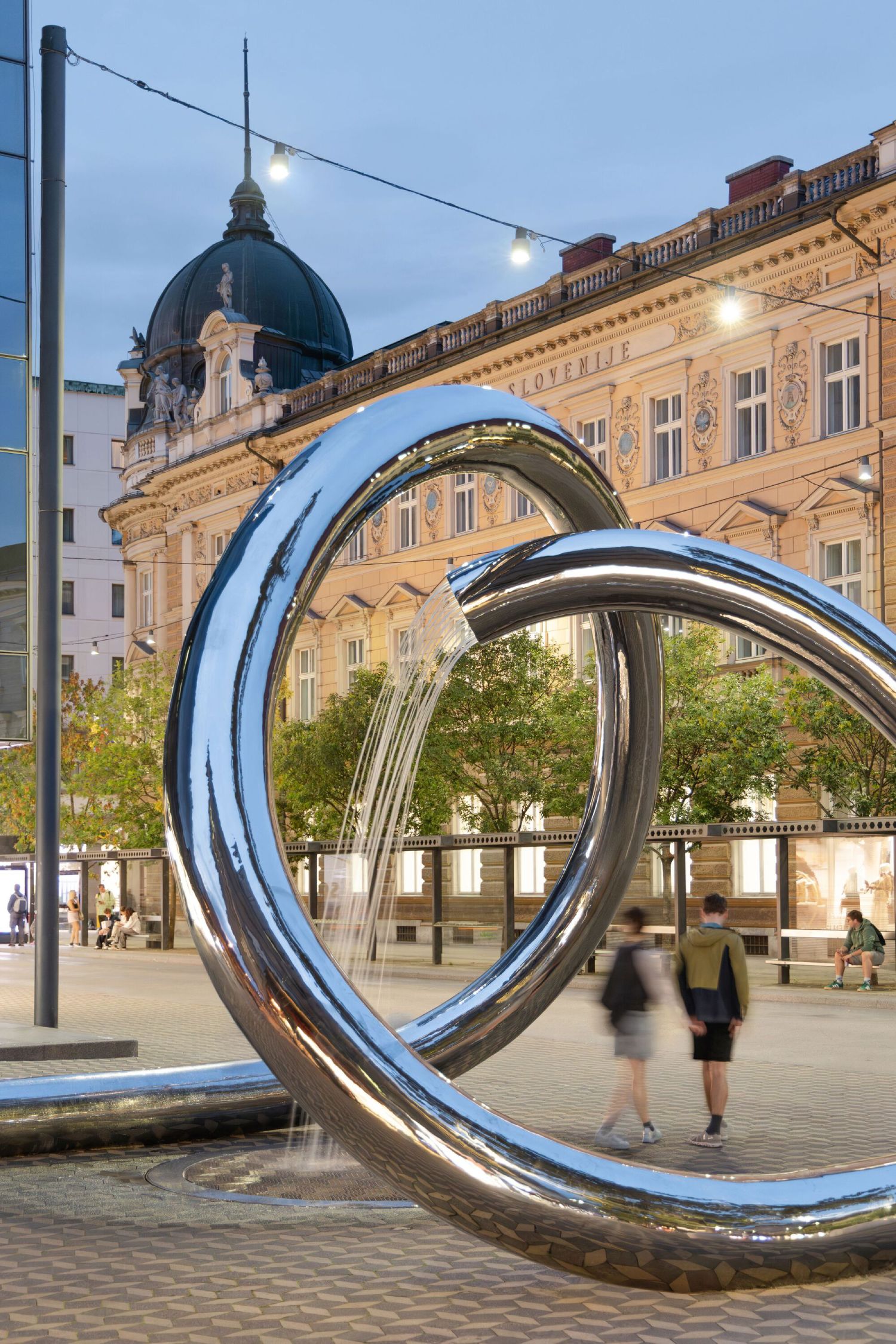 U samom centru slovenačke prestonice, fontana Vodena skulptura je realizovana devet godina nakon završetka javnog arhitektonskog konkursa, na kojem je pobedu odneo predlog koji zajednički potpisuju ljubljanske arhitekte Primož Boršič (P PLUS arhitekti) i Mojca Kocbek (M. Kocbek architects).