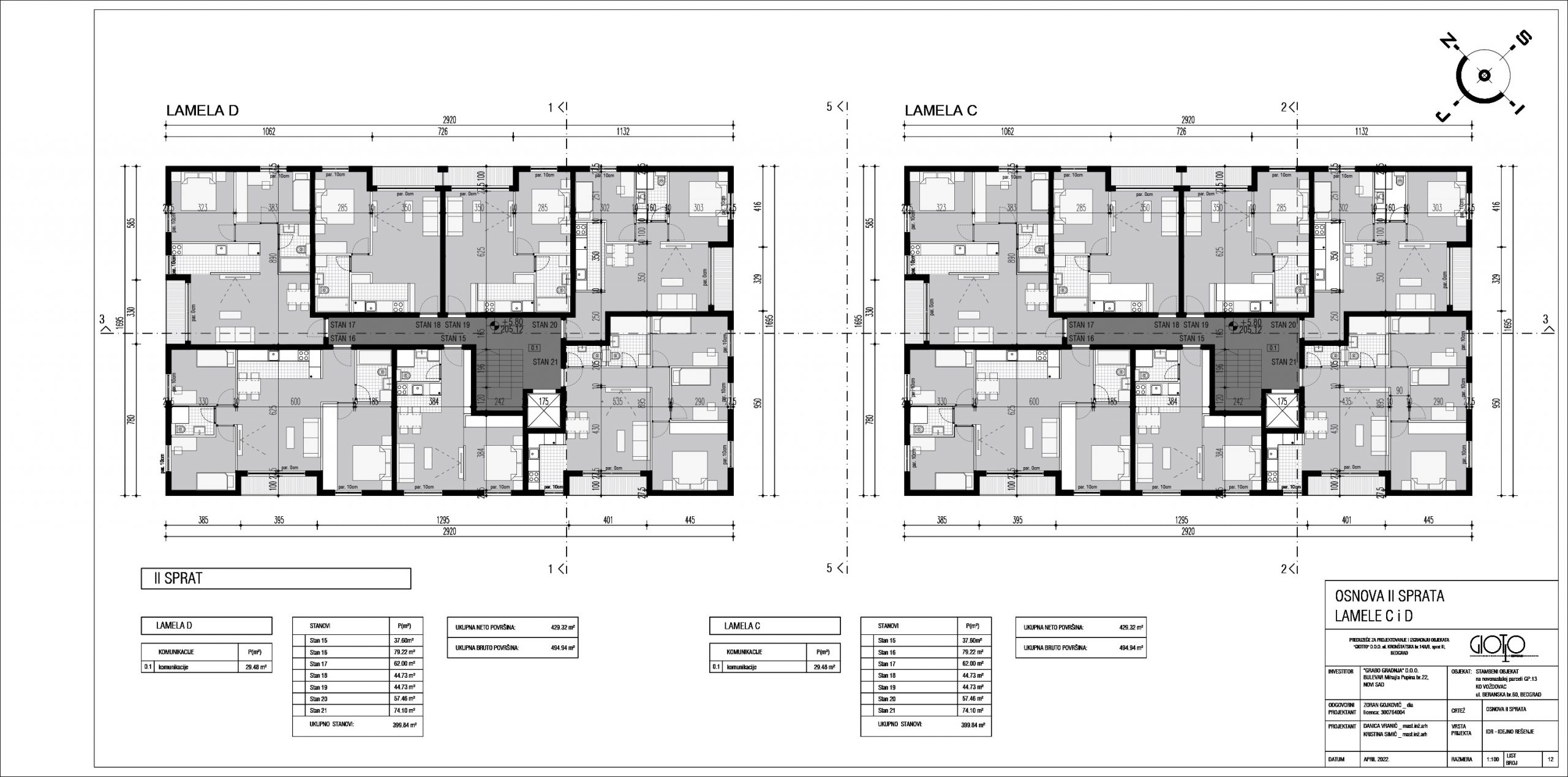 Objekti lamela C i lamela D su zasebni sa po 28 stanova i srednjom garažom sa po 20 garažnih mesta, dok je pristup garažama omogućen preko rampi.