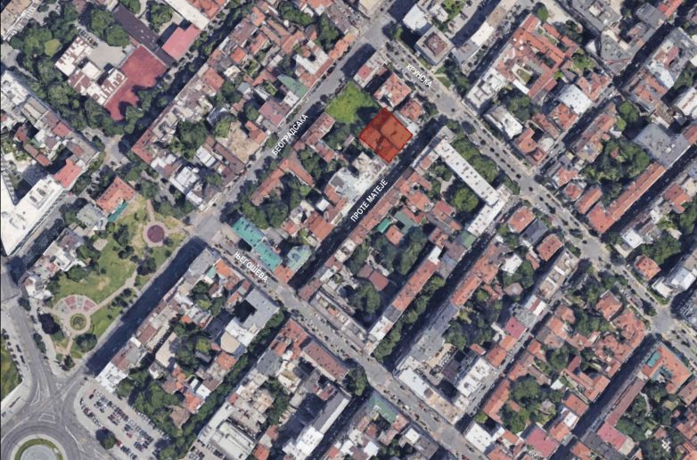 Granicom UP-a obuhvaćene su cele katastarske parcele KP 360 (537 m²) i KP 361 (547 m²) u KO Vračar, orijentisane ka ulici Prote Mateje na jugoistoku. Ukupna površina građevinskog kompleksa, koga čine građevinske parcele GP8 i GP9, iznosi 1.084 kvadratna metra.