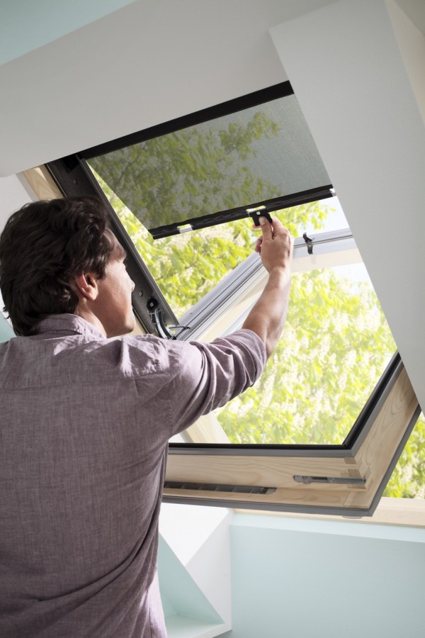 Sa VELUX komarnicima zadržavate pogled i svež vazduh, a insekti ostaju napolju. VELUX komarnik je lak za rukovanje, mrežica je sakrivena u kućištu kada nije u upotrebi i savršeno se uklapa sa vašim VELUX krovnim prozorom.