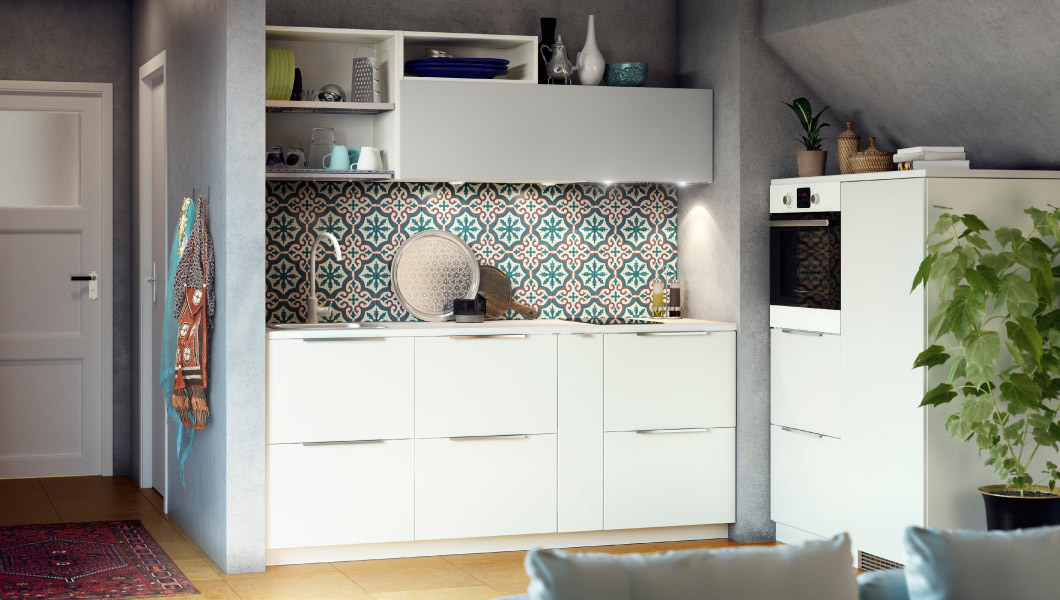 Beli frontovi vam dopuštaju da na otvorenim policama ili delu sa staklenim frontom izložite vaše šareno posuđe ili dekorativne predmete bez bojazni od preterivanja s koloritom. Pored ovoga, lični pečat belim kuhinjama može se lako dati i odabirom ručkica.